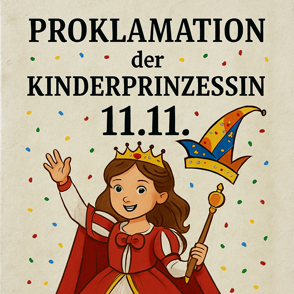 Traditionell findet am 11.11. die Proklamation der Kinderprinzessin statt. So auch in diesem Jahr. Ort und Zeit werden noch bekannt gegeben.